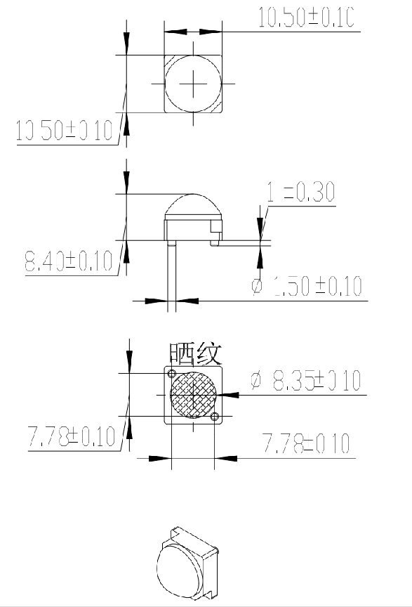 Dim.:L10.5*W10.5*H8.4mm